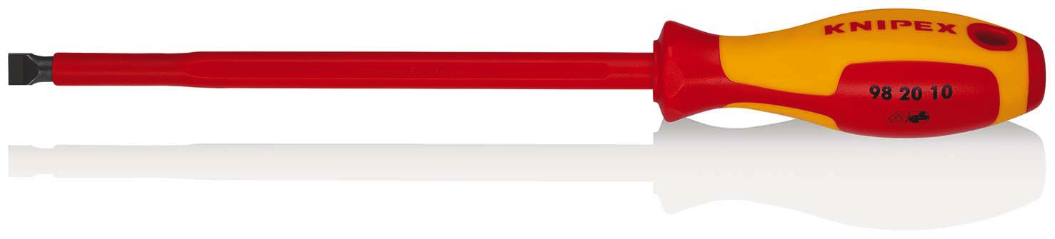 | Kurzbeschreibung | KNIPEX 98 20 10 Schraubendreher für Schlitzschrauben isolierender Mehrkomponenten-Griff, VDE-geprüft brüniert 320 mm |