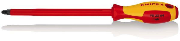 | Kurzbeschreibung | KNIPEX 98 25 04 Schraubendreher für Kreuzschlitzschrauben Pozidriv® isolierender Mehrkomponenten-Griff, VDE-geprüft brüniert 320 mm |