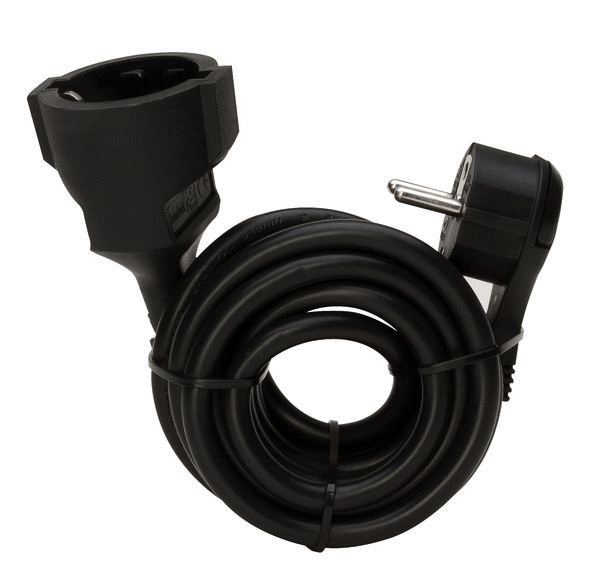 | Kurzbeschreibung | Verlängerung, Schutzkontakt-Winkelstecker, extra flach (8mm) und Schutzkontakt-Kupplung mit 2m Leitung, erhöhter Berührungsschutz, Farbe: schwarz |