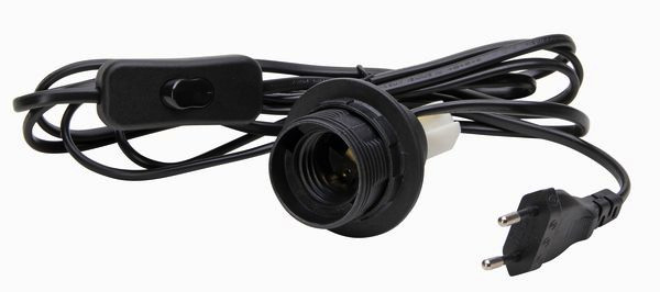 | Kurzbeschreibung | Lampenfassung, E27, mit 2m-Netzkabel und Schnurzwischenschalter, Farbe: schwarz |