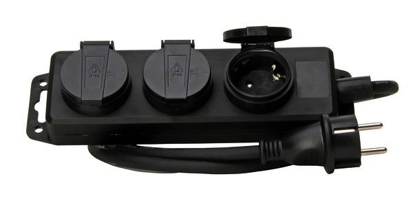 | Kurzbeschreibung | Feuchtraum-Steckdosenleiste, 3-fach, Klappdeckel, IP44, Farbe: schwarz |