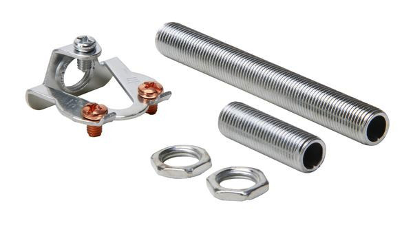 Leuchten-Aufhänge-Set: vermessingt, je 1x Gewinderohr 30mm und 80mm, 2x Mutter M10x1, 1x Aufhänger M10x1A