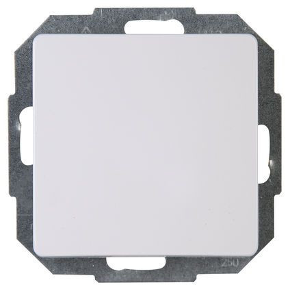 Taster im Design PARIS und der Farbe arktisweiß mit einer Bemessungsspannung von 250V~ sowie einem Schaltvermögen von 10AX, Schutzart IP20