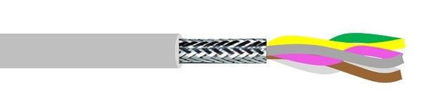 Aufbau: Feindrähtige blanke Kupferlitze, Aderisolation aus Spezial-PVC, Aderkennzeichnung: verschiedenfarbig (nach DIN 47100), Adern in Lagen verseilt, Folienbandierung, Abschirmung mit Geflecht aus verzinnten Kupferdrähten (optische Bedeckung ca. 85%), Spezial-PVC-Mantel, Farbe: grau