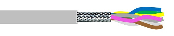 Aufbau: Feindrähtige blanke Kupferlitze, Aderisolation aus Spezial-PVC, Aderkennzeichnung: verschiedenfarbig (nach DIN 47100), Adern in Lagen verseilt, Folienbandierung, Abschirmung mit Geflecht aus verzinnten Kupferdrähten (optische Bedeckung ca. 85%), Spezial-PVC-Mantel, Farbe: grau