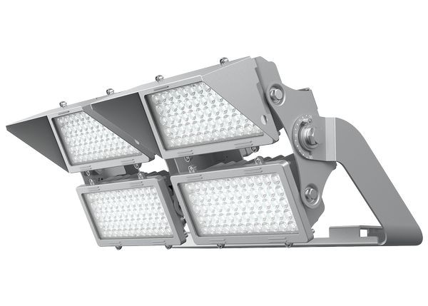 LED Universalstrahler AREON plus - Hocheffizienter, modularer und wartungsfreundlicher Leistungsstrahler - Der modulare Aufbau der LED Universalstrahler AREON plus ermöglicht Leistungen bis zu 1200 W, ideal für z.B. große Fußballfelder oder Parkplätze. Die extrem hohe Systemeffizienz von bis zu 135 lm/W sorgt für eine enorme Energieeinsparung. Ein Visor begrenzt die Blendung effektiv und sorgt für die Einhaltung der Lichtemissionsgrenze. Der einstellbare Neigungswinkel jedes Moduls gewährleistet eine besonders gleichmäßige Ausleuchtung. LED- und Treiber-Modul sind einzeln tauschbar. Der Treiber-Koffer kann z.B. auf Mastmitte ausgelagert werden, um Windlasten am Mastkopf zu minimieren und die Wartung (ohne Steiger) zu vereinfachen. Das pulverbeschichtete Aluminium-Druckguss-Gehäuse mit starkem Korrosionsschutz wurde speziell für den robusten Outdoor-Einsatz konzipiert.
