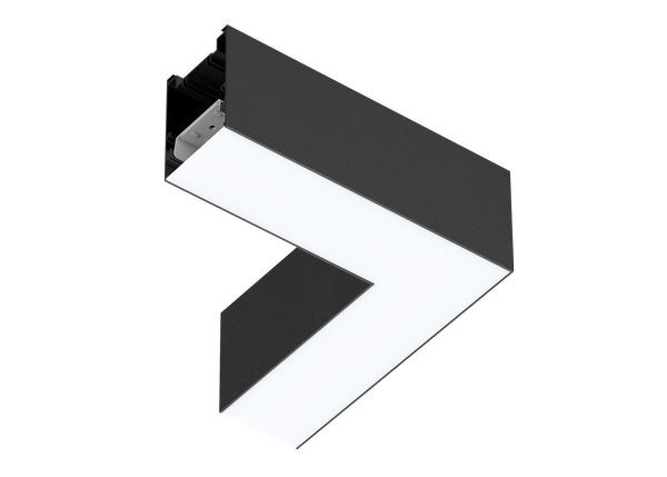 L-Eckverbinder - Verbindungsstück zur Kreation individueller Leuchtenformen - 10 W starker, beleuchteter L-Eckverbinder zur Kreation vielfältiger Formationen mit nahezu nahtlosem Licht in Kombination mit der LED Linearleuchte CENORA. Abhängig von der Einstellung der LED Linearleuchte CENORA sind Farbtemparaturen von 3000 / 4000 / 5000 K wählbar. Farbe: schwarz, Maße L x B x H: 200 x 200 x 76 mm.