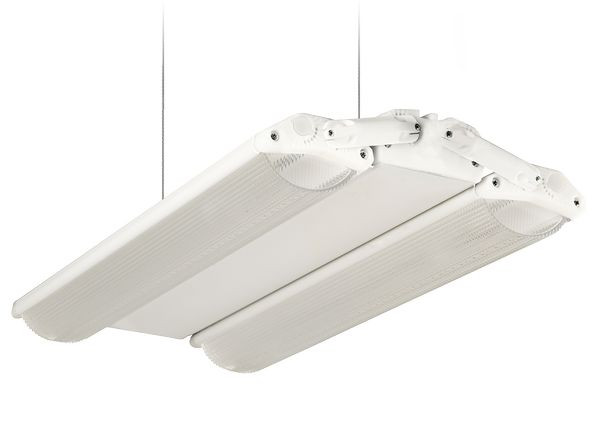 LED Hallenleuchte PRISMASPACE – Flexibles Ausleuchten am Lichtband durch verstellbare Lichtmodule - Die LED Hallenleuchte PRISMASPACE ist insbesondere für Lichtbandbzw. Kabelkanal-Systeme konzipiert, um z.B. bestehende T5- oder T8-Röhren durch dynamische und flexible Ausleuchtung zu ersetzen. Die hocheffizienten LED-Chips sind hinter den Prismenlinsen aus Acryl angeordnet. Diese Doppelmodule sind von 0° bis > 90° in 15°-Schritten verstellbar. Das Gehäuse aus Aluminium, die hochwertigen Materialien der einzelnen Komponenten und der entkoppelte Treiber auf einer mit Aluminium unterlegten Leiterplatte montierten LEDs sorgen für eine optimale thermische Ableitung und maximale Langlebigkeit. Das Beleuchtungssystem kann problemlos mittels Universalhalterung durch eine Einzelperson an alle Lichtband-Systeme installiert werden