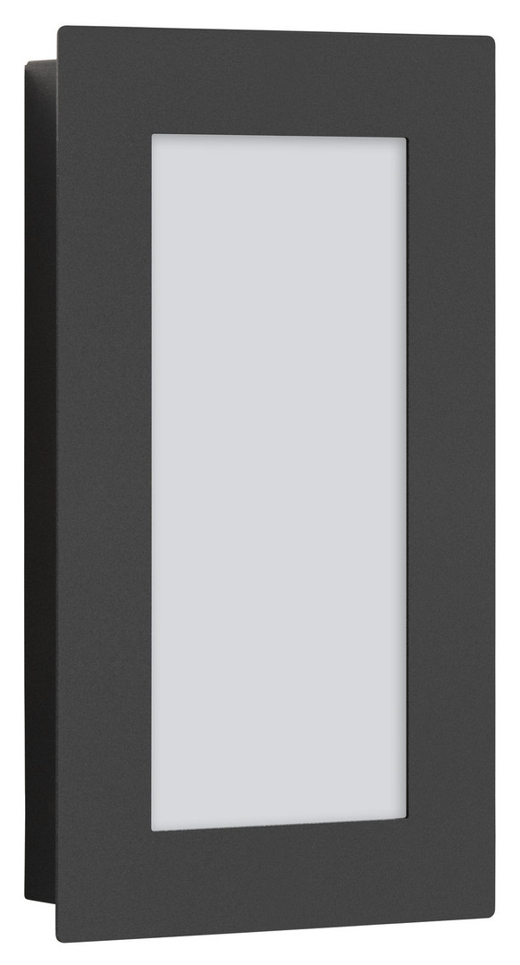 pulverbeschichtete Leuchte in Farbe Graphit, Diffusor aus Opalglas, inklusive LED-Leuchtmittel, 1x LED 12 Watt, ca. 3000 Kelvin, 1200 lm, Frontblende und Wandarmatur Edelstahl, Korpus elektrolytisch verzinktes Blech, Höhe 300 mm, Breite 170 mm, Wandabstand 45 mm, IP44