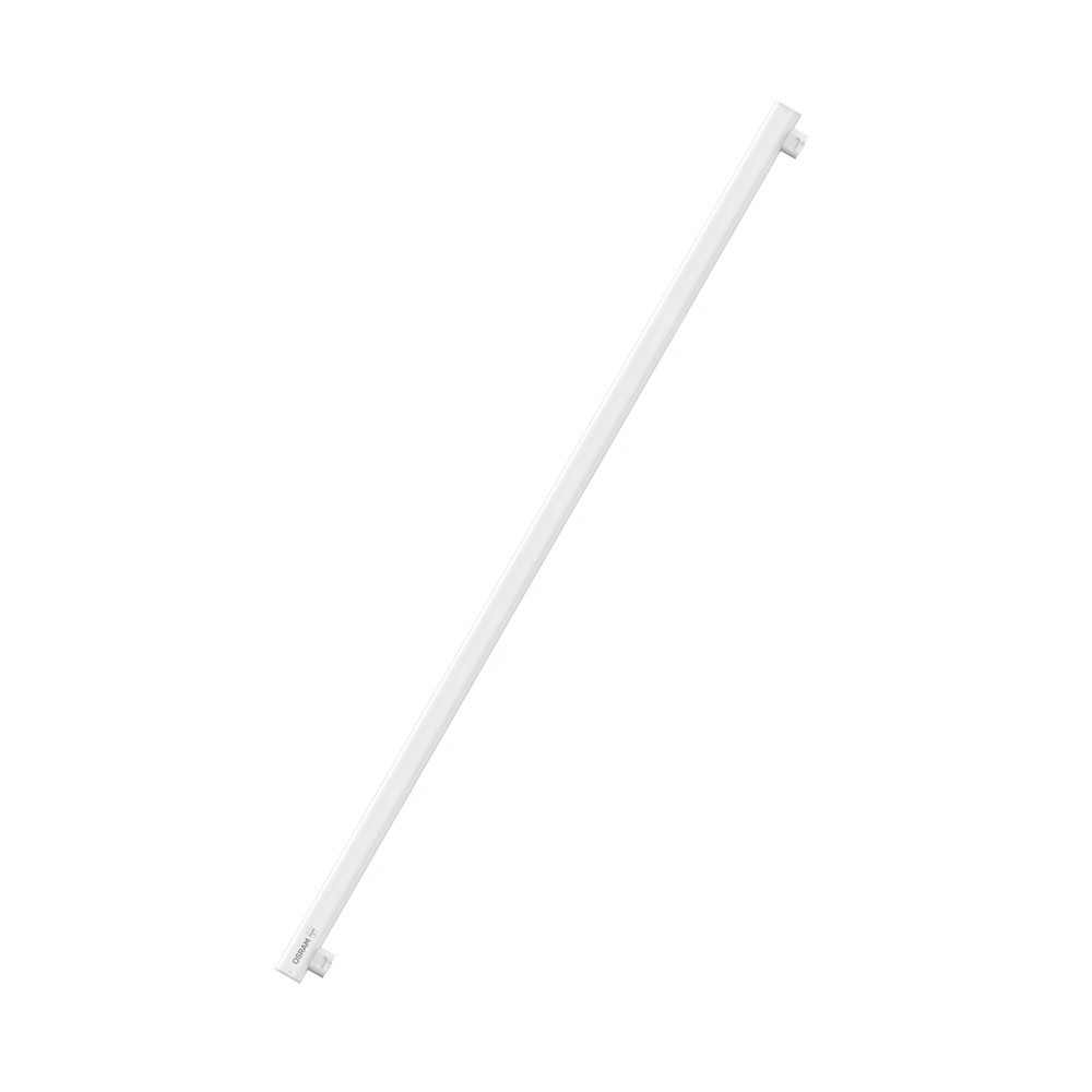Dimmbare stabförmige LED-Lampen. Produkteigenschaften: LED-Alternative zu stabförmigen Glühlampen. Dimmbar (an vielen handelsüblichen Dimmern, siehe auch www.ledvance.de/dim). Für besonders homogene Ausleuchtung. Produktvorteile: Sehr gute Farbwiedergabe (Ra = 90). Sehr lange Lebensdauer von bis zu 25.000 h. Geringerer Energieverbrauch als Glüh- oder Halogenlampen. Anwendungsgebiete: Ideal für Spiegelbeleuchtung. Hotels, Restaurants. Anwendungen im Haushalt. Einsatz im Außenbereich nur in geeigneten Außenleuchten. Sicherheitshinweise: Lampe nicht berühren, wenn sie beschädigt ist. Betrieb mit defektem Außenkolben nicht zulässig.