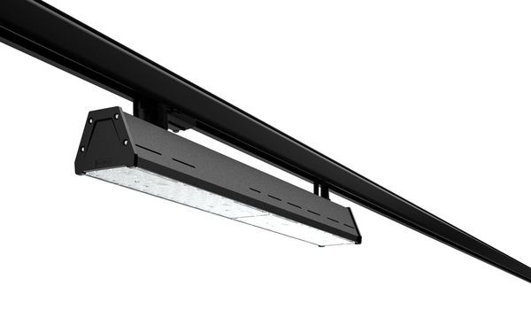 Pulverbeschichtete lineare Stromschienenleuchte aus Aluminium.