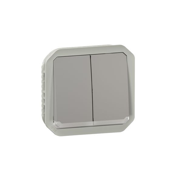| Kurzbeschreibung | Plexo New Einsatz Doppelwechselschal 10AX/Taster bel 10A, SL,IP55, IK08, Grau |
