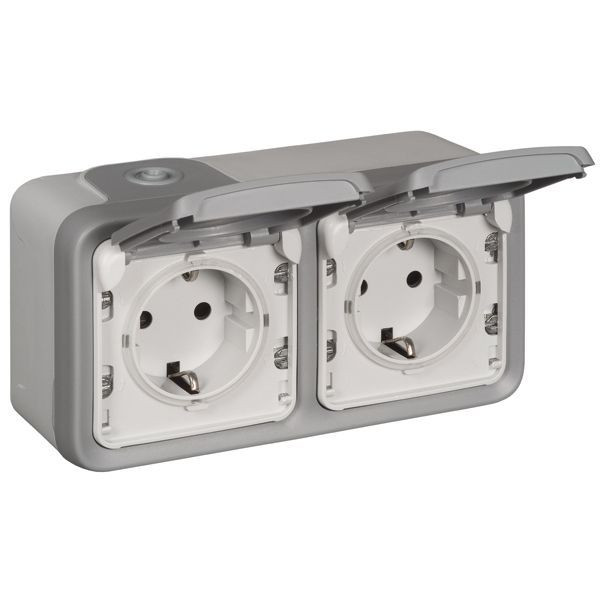 Steckdose (SL) 2-fach waagerecht IP44 Feuchtraum Aufputz Plexo 55 grau