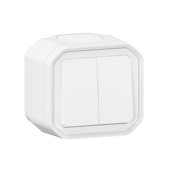 Plexo New Feuchtraum-Aufputz wahlweise Doppelwechselschalter 10 AX/ Taster 10 A, Steckklemmen (SL), IP 55, IK 08, in der Farbe: Ultraweiß