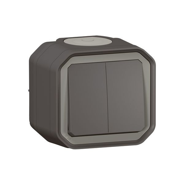 Plexo New Feuchtraum-Aufputz wahlweise Doppelwechselschalter 10 AX/ Taster 10 A, Steckklemmen (SL), IP 55, IK 08, in der Farbe: Anthrazit