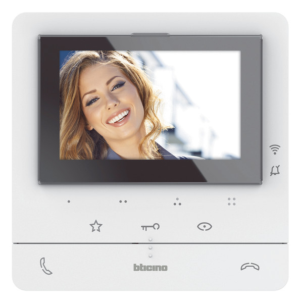 Hörerlose AP-Videohausstation CLASSE100 X16E mit Smartphone-Anbindung2-Draht-Bussystem, Farb-LCD-Display 5" (12,7 cm), mit Smartphone-Anbindung, freies Gegensprechen, neben den beiden physischen Gesprächstasten (Gespräch annehmen bzw. beenden), verfügt sie über 3 Sensortasten für die Funktionen: Tür öffnen, Treppenhauslicht einschalten (Aktivator Best.Nr. 346210 wird benötigt) und Türstation ein- bzw. umschalten. Weiters enthält sie 4 frei konfigurierbare Zusatztasten (z. B. für Intern Sprechen, zusätzlicher Türöffner, etc.). 16 melodische Ruftöne einstellbar. Inkl. Arztschaltung/Türomatfunktion. Für Tür-/Etagenruf mit Rufunterscheidung. Lautstärke von Rufton und Gespräch, Farbe und Helligkeit des Bildschirms sowie die WLAN-Konfiguration werden über das OSD-Menü eingestellt, welches über einen seitlichen Regler bedient wird. LED-Anzeige für: Ruftonabschaltung, Wi-Fi, Türöffner- und Verbindungsstatus. Über die App Home + Security (erhältlich für Android und iOS) kann die komplette Funktionalität der Hausstation (Videobild, Gespräch, Türöffnen, zusätzliche Kameras, etc.) auf dem Smartphone wiedergegeben werden. Aufputzmontage mittels mitgelieferter Wandhalterung. Ein Tischzubehör (2 Stück von Best.Nr. 344692 werden benötigt) ist separat erhältlich. Anschluss für BUS, Etagenruf und Zusatzläutewerk. Maße B × H × T: 164 × 165 × 18,5 mm