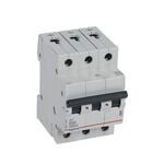 Legrand Leitungsschutzschalter RX3 nach EN 60898-1, VDE 0641-11, EN 60947-2, 3-polig, B-Charakteristik, Bemessungsstrom In 50 A, Bemessungsschaltvermögen Icn 6 kA nach EN 60898-1, Bemessungsspannung Un 400 VAC, Bemessungsfrequenz 50/60 Hz, Energiebegrenzungsklasse 3, Befestigung auf Hutprofilschiene EN 60715 durch eine rastende Schnellbefestigung, klare Information vorne auf jedem Gerät, Kennzeichnung Schaltstellungsanzeige On/Off, mit Beschriftungsfeld, Anbau von Hilfsgeräten nicht möglich. Leitungsschutzschalter mit B-Charakteristik sind vornehmlich für den Leitungsschutz in Licht- und Steckdosen-Stromkreisen bestimmt.