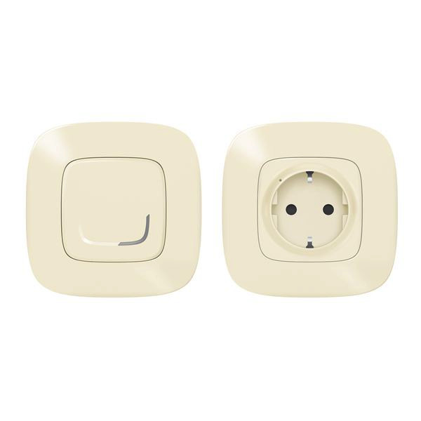 Vorkonfiguriertes Funk-Set für "Valena Allure with Netatmo": Geschaltete Steckdose - Vorkonfiguriertes Set zum Schalten einer Steckdose mittels Wandsender bestehend aus:- 1x schaltbare Funk-Steckdose 16 A (3680 W) mit integrierter Sicherung gegen Überlast. Die Steckdose dient zum Schalten von elektrischen Verbrauchern (z.B. Stehlampen, Haushaltsgeräte, etc.). Kann gegen eine bestehende 1-fach Steckdose getauscht werden. Die Montage erfolgt mittels Schrauben oder Spreizkrallen in eine 1-fach Standard-Unterputz- oder Hohlwanddose mit Tiefe 40 mm. Automatische Steckklemmen. Konfigurierbare LED-Anzeige als Beleuchtungsfunktion. Auslieferung inkl. Abdeckrahmen.- 1x Funk-Wandsender Licht zum Steuern von Funk-Steckdosen, Mikromodulen und/oder Funk-Lichtschaltern. LED-Anzeige für Batteriestatus. Ausgestattet mit einer 3 V-Batterie CR2032 (Standby-Lebensdauer: 8 Jahre) und 4wiederverwendbare Klebestreifen zur Befestigung des Wandsenders auf jeder Oberfläche. Dieser kann auch direkt an der Wand oder an eine Installationsdose geschraubt werden. Auslieferung komplett mit Wippe, Abdeckrahmen und Staubschutzabdeckung. Bemerkung: Bei Erweiterung der vorkonfigurierten Sets ist zu beachten, dass die Wandsender immer alle Schalter, Steckdosen und Mikromodule schalten.Ausführung: Valena Allure in der Farbe Mandelweiss