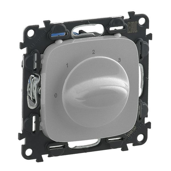 Valena Allure Drehschalter 3-Stufenschalter mit Nullstellung (0, 1, 2, 3) 1-polig mit N-Klemme, Schraubklemmen,geliefert inkl. Abdeckung. Schaltvermögen: Ohmsche Last (AC-21 A): 20 AMotoren (AC-23 A): 2,5 kW. Farbe: Aluminium