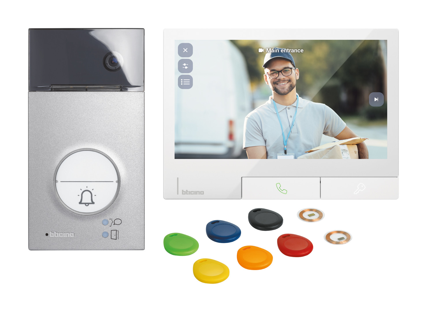 Flex'One Video-Set mit Türstation LINEA 3000 Grau + Transponderleser und hörerloser Hausstation CLASSE 300X Light mit Smartphone-Anbindung. Das Video-Set beinhaltet: Eine hörerlose Video-Innenstelle Classe 300X in der Farbe: Light (Best. Nr. 344742) mit 7“ Touchscreen, WLAN-Anbindung, Anrufbeantworterfunktion mit Audio/Video-Memory. Neben den Standardfunktionen kann die Innenstelle mittels WLAN mit einem Smartphone angebunden werden. Mit der HOME + SECURITY (kostenlos verfügbar für Android und iOS) kann die komplette Funktionalität (Gespräch, Video, Türöffner-Funktion) über das Smartphone - von Zuhause oder unterwegs - bedient werden. Eine Türstation LINEA 3000 Grau (Best. Nr. 343091) mit Frontblende aus ZAMAK, Weitwinkel-Farbkamera und Transponderleser inkl. 8 Transponder (6x farbig und 2x flach). Die Schutzart beträgt IP54 und die Schlagfestigkeit IK10. Kann mittels Schiebeschalter für das Ein- oder Zweifamilienhaus konfiguriert werden. Ruftaste hinterleuchtet mit weißer LED. Für Aufputzmontage, kann aber mittels – separat erhältlichem – Zubehör (Best. Nr. 905198) Unterputz installiert werden. Inkludiert eine Spannungsversorgung (Best. Nr. 346050) und Türöffnerrelais (Best.Nr. 346250).
