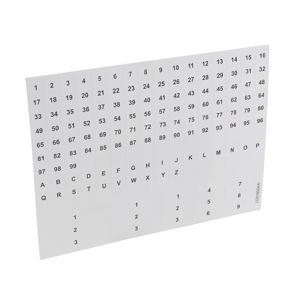 Legrand Beschriftungsbögen, vorperforiert, bezeichnet mit Ziffern von 1 bis 99 und Buchstaben von A bis Z, für die Beschriftung von Verteilereinbaugeräten (mit Beschriftungsfenster).