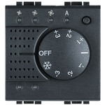 Raumthermostat für Fan-Coils mit Stellrad zum manuellen Veränder der Solltemperatur um ±3 °C, Frostschutz und Aus, Taste Lüftergeschwindigkeit, Messbereich 3–40 °C, Kontroll-LEDs für Betrieb, Lüftergeschwindigkeit und Heizen/Kühlen, Farbe: Anthrazit