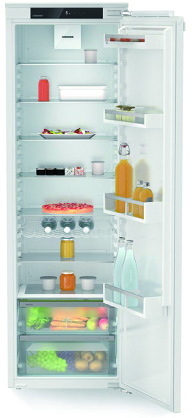 LC-Display monochrom mit Touch-Elektronik, Alarm bei Störung und Türalarm optisch und akustisch, SmartDevice-Box nachrüstbar, PowerCooling mit FreshAir-Aktivkohlefilter, SuperCool, LED-Deckenbeleuchtung, 7 GlassLine-Abstellflächen, davon 6 höhenverstellbar, 1 Metall-Flaschenbord,1 EasyFresh-Safe auf Teleskopauszügen, 1 großes Obst-/Gemüsefach mit Teilauszug auf Teleskopschienen, Türanschlag rechts, wechselbar