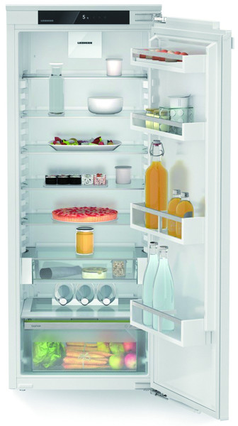 LC-Display monochrom mit Touch-Elektronik, Türalarm optisch und akustisch, Energiesparmodus, HolidayMode, SabbathMode, Displaysperre, SmartDevice-Box nachrüstbar, Umluftkühlung, FreshAir-Aktivkohlefilter, SuperCool, LED-Deckenbeleuchtung, 7 GlassLine-Abstellflächen, davon 6 höhenverstellbar, 1 teilbar, 1 VarioSafe Schublade, 3er Flaschenablage, Platz für Backblech, 1 EasyFresh-Box auf Auszugsschienen, Türanschlag rechts, wechselbar, Schließdämpfung