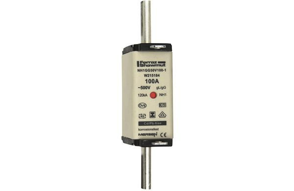| Kurzbeschreibung | Sicherungseinsatz NH gG Größe 1 AC500V DC250V 100A mit spannungsfreie Grifflaschen SGL und Doppelkennmelder |