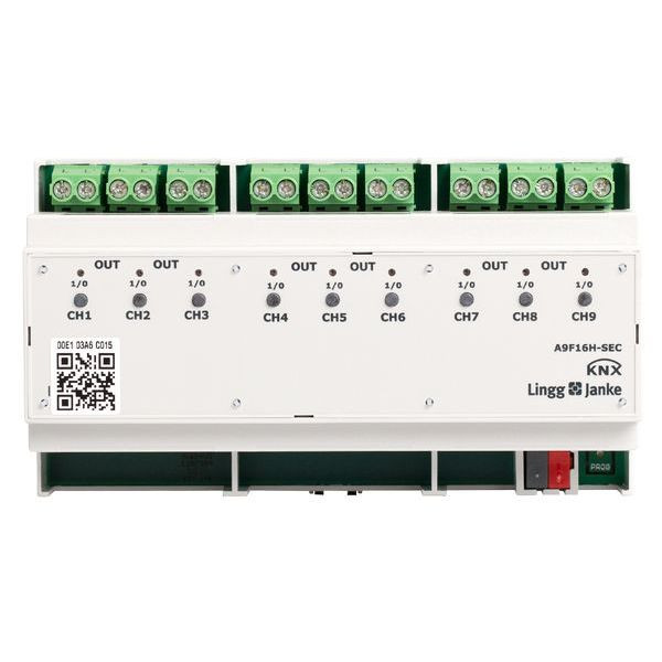 KNX eco+ Schaltaktor 9-fach Handbedienung 9 TE Schaltleistung 16A 250 VAC C-Last 200µF
