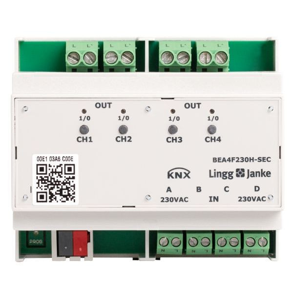 KNX eco+ Binär Ein-/Ausgang 4-fach Signaleingang 230V AC/DC Handbedienung 6 TE Schaltleistung 16A 250 VAC C-Last 200µF