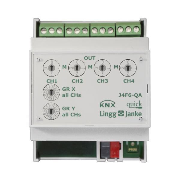 KNX quick Jalousie-/Rollladenaktor 4-fach 10A individuelle Einstellung pro Kanal 4 TE Schaltleistung 10A 250 VAC C-Last 140µF