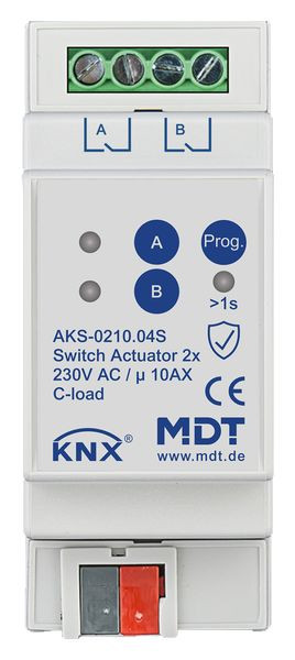 | Kurzbeschreibung | KNX Schaltaktor 2-fach, 2TE REG, 10 A, 230 V AC, C-Last,Standard,140µF, Secure |