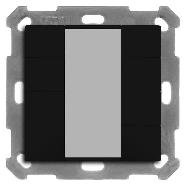 KNX Taster 55 8-fach, Schwarz matt. Ausführung mit 8 Tasten. Passend für 55 mm Schalterprogramme z. B. MDT Sortiment 55 oder GIRA E2 oder BERKER B3, B7 oder JUNG A 550 oder Merten M-Pure. Mittiges Schriftfeld mit Deckfolie zur individuellen Beschriftung. Die Tasten sind als Tastenpaar oder Einzeltasten frei einstellbar. Ein- und Zweitasterbetrieb für Schalten, Dimmen, Jalousie, Werte. Innovative Gruppensteuerung mit langem/extra langem Tastendruck. Umschalten von bis zu vier Werten oder Szenen. Kurzer/Langer Tastendruck mit 2 Objekten. 4 Logikblöcke. Einbau in Schalterdose mit mitgeliefertem Tragring. Integrierter Busankoppler. 3 Jahre Produktgarantie.
