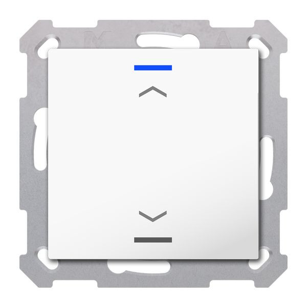 KNX Taster Light 55 1-fach, RGBW, Reinweiß glänzend, Jalousie, Secure. Ausführung Auf/Ab Symbol mit 1 Tastenpaar / 2 Tasterflächen. KNX Data Secure, integrierter Busankoppler. Passend für 55 mm Schalterprogramme z. B. MDT Sortiment 55 oder GIRA Standard 55, E2, Event, Esprit oder BERKER S1, B3, B7 oder JUNG A 500, A PLUS, A CREATION, AS 500, A 550, A FLOW oder MERTEN 1M, M-Smart, M-Plan, M-Pure. Die Tasten sind als Tastenpaar oder Einzeltasten frei einstellbar. Ein- und Zweitasterbetrieb für Schalten, Dimmen, Jalousie, Werte. Intelligentes Ein-Tasten-Dimmen. Erweiterte Funktion "Werte senden". Umschalten von bis zu vier Werten oder Szenen. Kurzer/Langer Tastendruck mit 2 Objekten. Innovative Gruppensteuerung mit langem/extra langem Tastendruck. Mehrfach-Tippfunktion sendet bis zu 4 Werte auf gleiche oder verschiedene Objekte. Zwei RGBW Status-LEDs pro Tastenpaar. LED Helligkeit über Tag/Nacht- oder Helligkeit-Objekt steuerbar. 4 Logikblöcke. Einbau in Schalterdose mit mitgeliefertem Tragring. 3 Jahre Produktgarantie.