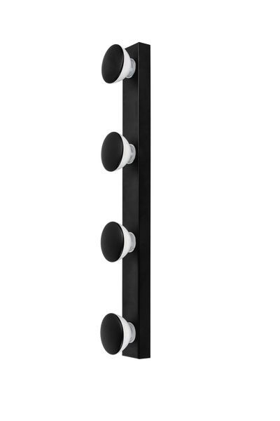 Bad-Spiegelleuchte und Garderobenleuchte HOLLYWOOD mattschwarz (4 x 400 Lumen). Wandleuchte zur Spiegel- und Raumbeleuchtung. Ideal fürs Badezimmer durch Schutzart IP44. Blendungsfreies, indirektes Licht durch LED-Kopfspiegellampen. Zugleich tolle Lichteffekte an der Wand.. Nachhaltig wechselbare LED-Leuchtmittel mit Sockel GU10. Integrierte Make-up-Licht-Funktion (Lichtfarbe umschaltbar). Einfache Installation durch Anschlussklemme im Gehäuse. Auch in Chrom mit vier und fünf LED lieferbar.
