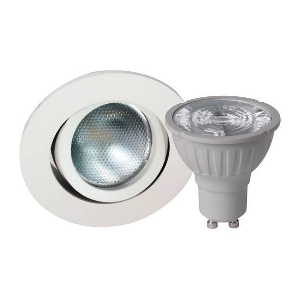 Höchste Energieeffizienzklasse des austauschbaren Leuchtmittels: A++, Leuchtmittel: LED austauschbar, Fassung: GU10, Werkstoff des Gehäuses: Aluminium, Gehäusefarbe: weiß, Nennspannung: 220..240 V, Schutzart (IP): IP20, Geeignet für Lampenleistung: 5,2 W, Lichtfarbe: weiß, Farbtemperatur: 2800 K, Höhe/Tiefe: 26 mm, Außendurchmesser: 85 mm