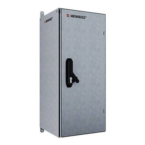 MENNEKES Aufputz-Verteiler als Wandgeraetestecker Schutzart IP 44 Gehaeuse: 1 Edelstahlgehaeuse, 1.4301 geschliffen, K240 700x300x310 mm (HxBxT) Bestueckung/Anschlussmoeglichkeit: 1 x CEE Anbaugeraetestecker 125A 5p 1h >50V (IP 67) Klemme fuer 1 Leitung bis 5 x 50mm² (flexibel max. 35 mm²) Leitungseinfuehrung: 2 x Leitungseinfuehrungstuelle unten,geeignet fuer Leitungsdurchmesser von 13-43mm 1 x Messing - Verschlussschraube M20 unten Fronttuer mit Schwenkhebelgriff und Profilhalbzylinder bei gesteckter Kupplung verschliessbar; 1 Erdungsschraube M6 innen 1 Set Wandbef.laschen (90432000) Gesamtgewicht: ca. 30 KG