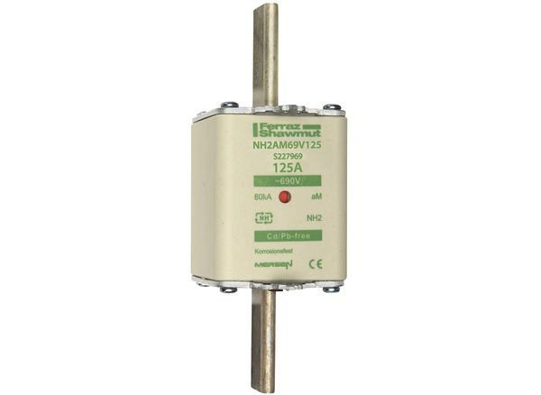 | Kurzbeschreibung | Sicherungseinsatz NH aM Gr.2 AC690V 125A mit spannungsführenden Grifflaschen sfü und Doppelkennmelder |