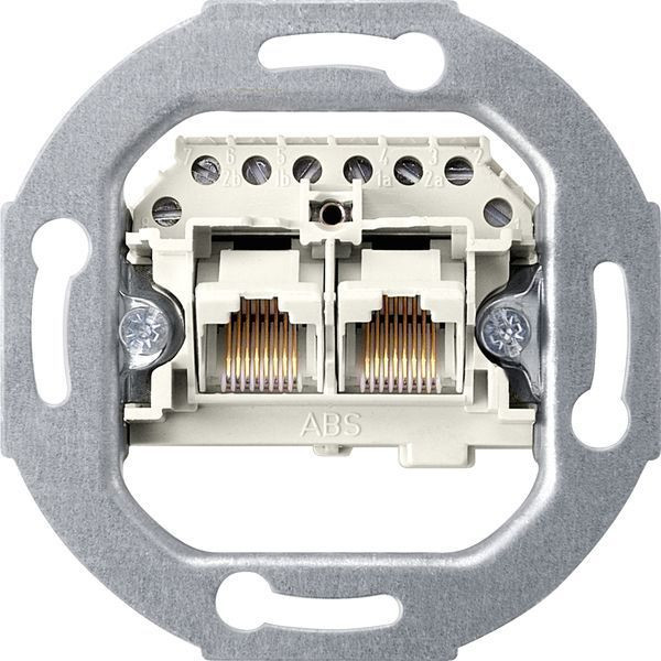 Art.-Nr. 2920… Zum Anschluss von analogen oder digitalen Endgeräten über zwei parallelgeschaltete 8-polige UAE-Buchsen in Busverkabelung. Mit Schraubklemmen. Zu komplettieren mit Zentralplatte für UAE-Einsatz, 2fach System M 2961xx, 2980xx, System Design MEG4522-60xx, System Fläche 2926xx Farbe weiß.