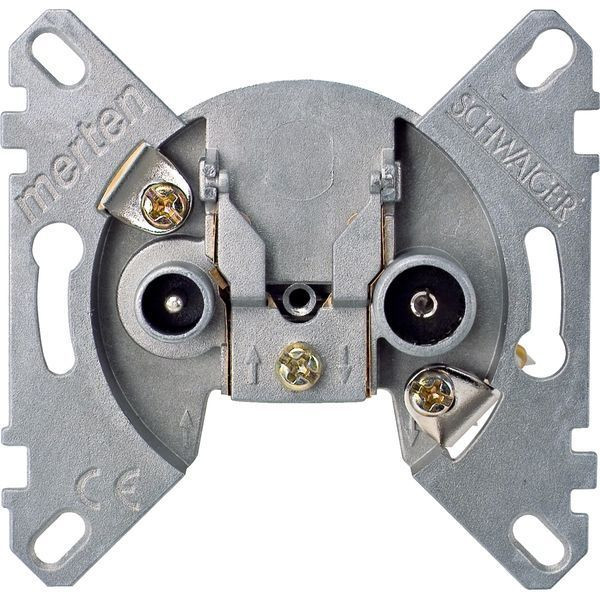 DIN EN 50083-1/A1, DIN EN 80083-2/A1. Breitband-Richtkopplerdose für Durchschleifsysteme in BK-, GA- und Sat-Hausverteilanlagen. Passend für UP-Dosen Ø 55-65 mm.