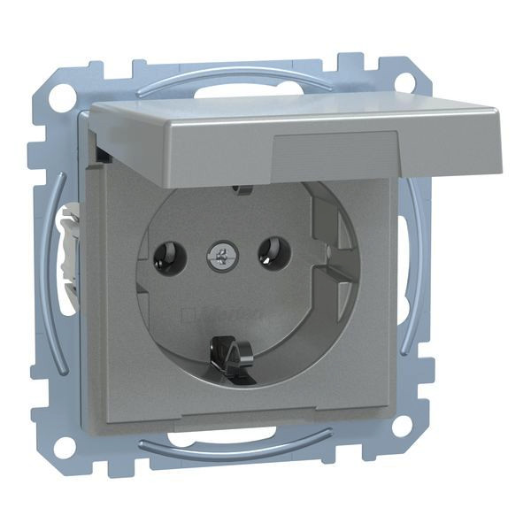 | Kurzbeschreibung | SCHUKO-Steckdose mit Klappdeckel, Steckklemmen, aluminium, System M |