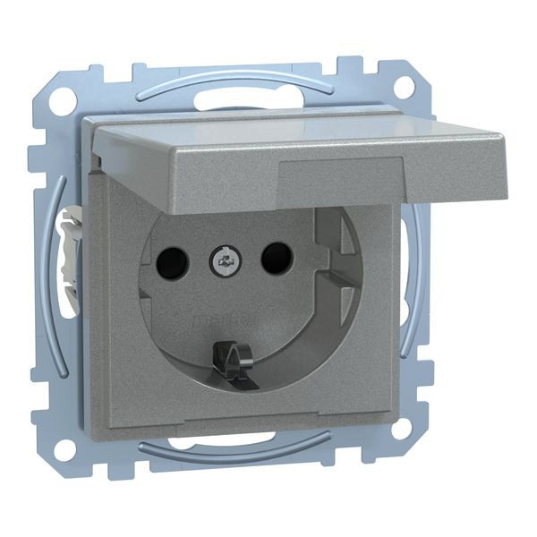 | Kurzbeschreibung | SCHUKO-Steckdose mit Klappdeckel, IP44, Berührungsschutz, Steckklemmen Aluminium, System M |