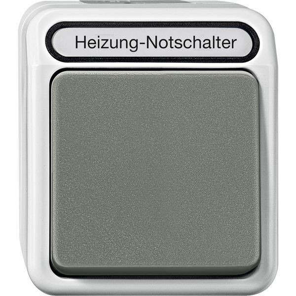 Beleuchtet. Mit Aufdruck /Heizung Notschalter/. Eigenschaften-Frontseitiges Nachrüsten von Beleuchtungsmodulen ohne Schalterdemontage. Frontseitige Mess- und Prüfkontakte, zugänglich ohne Schalterdemontage. Aufputz-Montage. Mit Steckklemmen. Schutzart IP 44. Abmessungen ca. 83x73x56 mm. Zubehör LED-Leuchtanhänger, AC 100-230 V AQUASTAR MEG3901-8006. LED-Leuchtanhänger, AC/DC 8-32 V AQUASTAR MEG3922-8006. LED-Langfeldbeleuchtung, AC 100-230 V AQUASTAR MEG3903-8000. Schriftfeldeinlagen AQUASTAR MEG3957-8000. Doppeleinführung AQUASTAR MEG3961-80xx Verbindungsstück AQUASTAR MEG3963-80xx Rohreinführung AQUASTAR MEG3964-8029. Kanaleinführung AQUASTAR MEG3965-80xx Schieber mit Stutzen AQUASTAR MEG3962-8029. Lieferumfang Mit LED-Langfeldleuchte. Mit Schriftfeldeinlage. Mit Doppeleinführung für Kabel und Leitungen. Farbe lichtgrau.