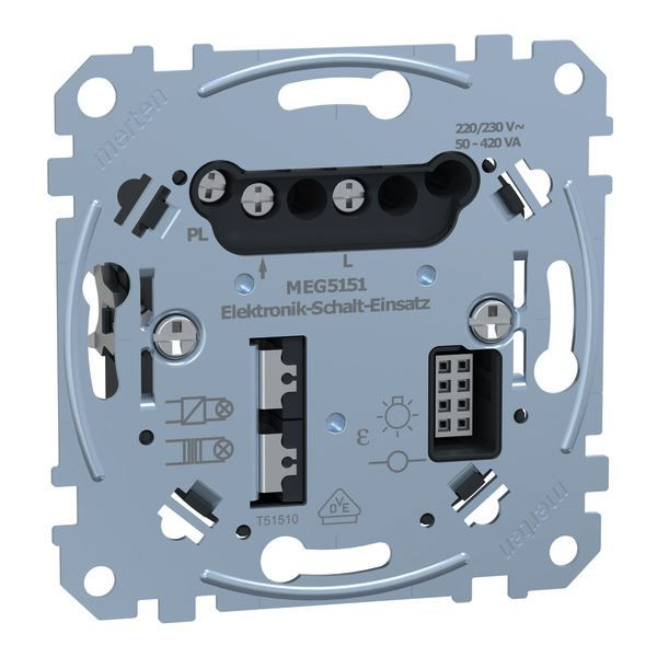 Für ohmsche oder induktive Lasten wie Glühlampen und NV-Halogenbeleuchtung mit konventionellem Trafo. Mit Krallen- und Schraubbefestigung. Mit Schraubklemmen. Funktionen: -Schalten von einem Ausgang. Es wird durch das Modul die Art und Weise festgelegt, wie die Funktion des Einsatzes genutzt wird. Externe Ansteuerung über einen PlusLink Eingang. Überlast- und kurzschlussfest. Nennspannung: AC 220/230 V, 50/60 Hz. Schaltleistung: 50-420 VA. Neutralleiter: nicht erforderlich (2 Leitersystem). Anschlussquerschnitt: max. 2x2,5 mm². Zu komplettieren mit: Taster-Modul Basic, 1fach System M MEG5110-0300, System Design MEG5110-60xx Taster-Modul Basic, 2fach System M MEG5120-0300, System Design MEG5120-60xx. Taster-Modul Comfort, 1fach System M MEG5111-0300, System Design MEG5111-60xx Taster-Modul Comfort, 2fach System M MEG5121-0300, System Design MEG5121-60xx Taster-Modul Comfort Plus mit IR, 1fach System M MEG5112-0300. Taster-Modul Comfort Plus, 2fach System M MEG5122-0300. Wiser Taster-Modul, 1fach System M MEG5113-0300, System Design MEG5113-60xx Wiser Taster-Modul, 2fach System M MEG5123-03xx, System Design MEG5123-60xx. Drehregler-Modul System M MEG5252-03xx/-04xx ARGUS 180 UP Sensor-Modul System M MEG5710-03xx/-04xx, System Design MEG5710-60xx ARGUS 180 UP Sensor-Modul mit Schalter System M MEG5711-03xx/-04xx, System Design MEG5711-60xx. ARGUS Präsenz 180/2,20 m UP Sensor-Modul System M MEG5530-03xx/-04xx ARGUS Präsenz Sensor-Modul mit IR MEG5522-00xx Zeitschaltuhr-Modul Standard System M MEG5754-03xx/-04xx. Zeitschaltuhr-Modul System M MEG5755-03xx/-04xx, System Design MEG5755-60xx. Sender: Nebenstelle Plus, 1fach System M MEG5119-0300, System Design MEG5119-60xx Nebenstelle Plus, 2fach System M MEG5129-0300, System Design MEG5129-60xx Zentralstellen-Einsatz MEG5190-0000. Zubehör: PlusLink Verteiler (3 Phasen) MEG5130-0001. PlusLink-Erweiterung MEG5130-0000.