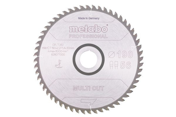 | Kurzbeschreibung | Sägeblatt "multi cut - professional", 190x2,2/1,4x30, Z56 FZ/TZ 8° (628077000) |