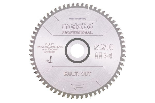 | Kurzbeschreibung | Sägeblatt "multi cut - professional", 210x2,4/1,6x30, Z64 FZ/TZ, 5°neg. (628082000) |