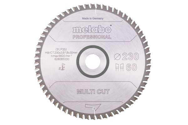 | Kurzbeschreibung | Sägeblatt "multi cut - professional", 230x2,6/1,8x30, Z60 WZ 5° (628085000) |