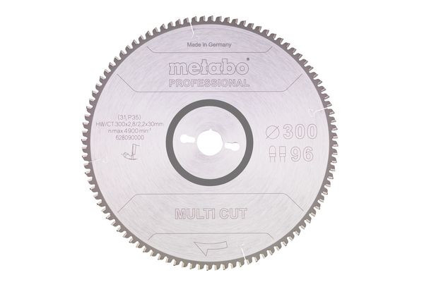 | Kurzbeschreibung | Sägeblatt "multi cut - professional", 300x2,8/2,2x30, Z96 FZ/TZ, 6°neg. (628090000) |