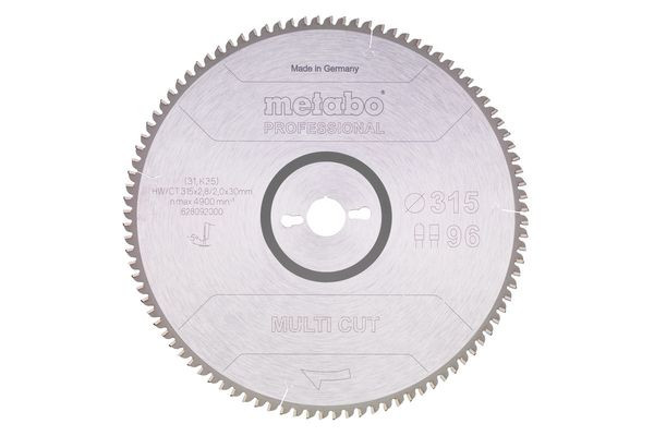 | Kurzbeschreibung | Sägeblatt "multi cut - professional", 315x2,8/2,0x30, Z96 FZ/TZ, 5°neg. (628092000) |